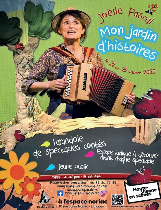 Du 22 au 25 octobre, l’Espace Noriac à Limoges accueillera “Mon Jardin d’Histoires”, une farandole de spectacles contés pour le jeune public (18 mois à 10 ans) imaginée et interprétée par Joëlle Pascal, conteuse et musicienne bien connue en Haute-Vienne.