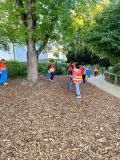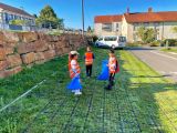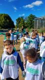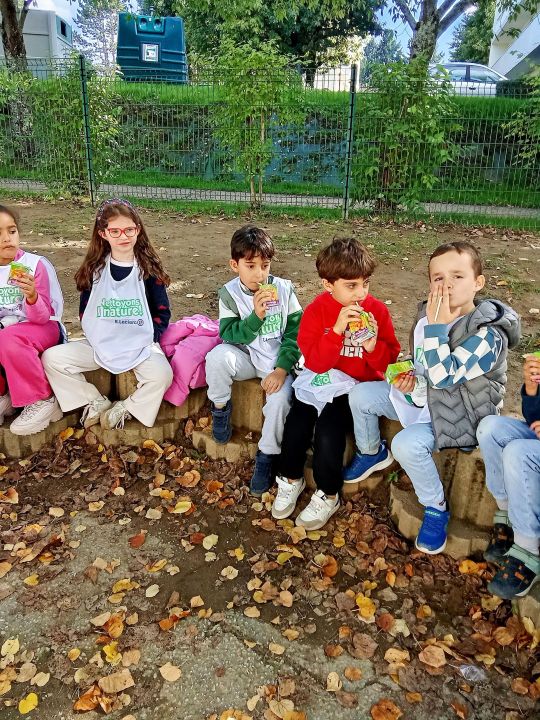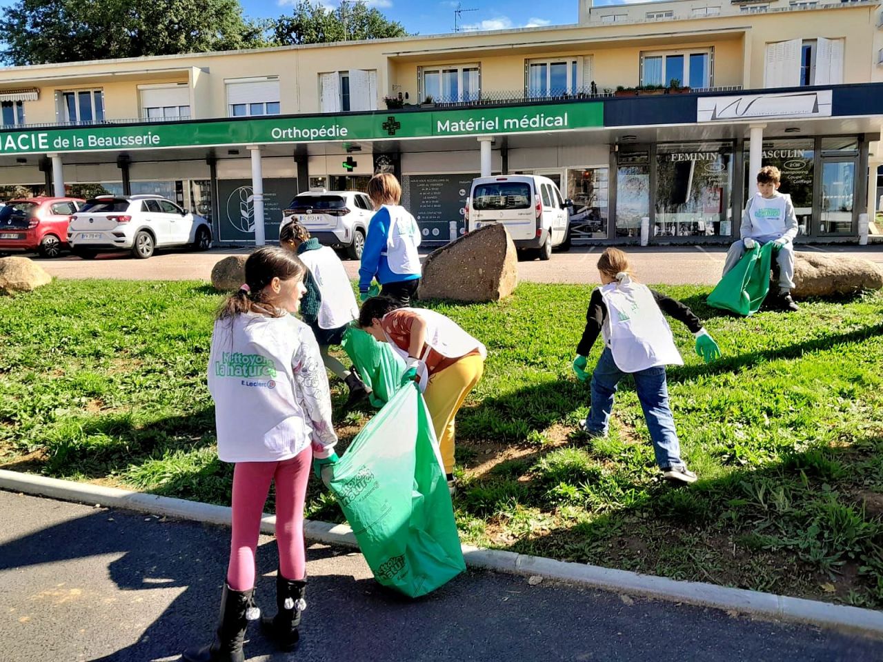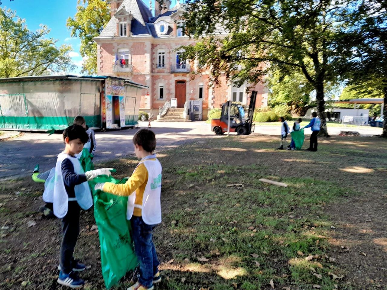 Grâce au partenariat avec une enseigne de la grande distribution, nous avons pu disposer du matériel nécessaire : gants, chasubles et sacs poubelles. Nous avons également pu distribuer à chaque enfant une madeleine, une pomme et un jus de fruit offert avec le matériel.